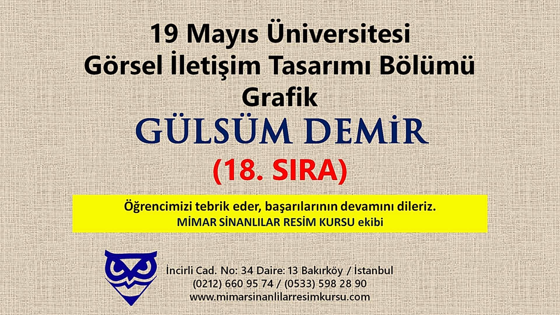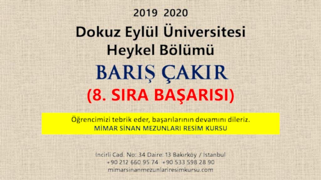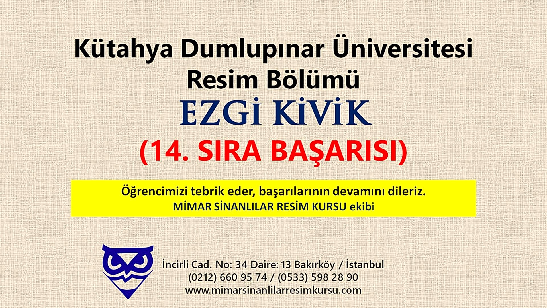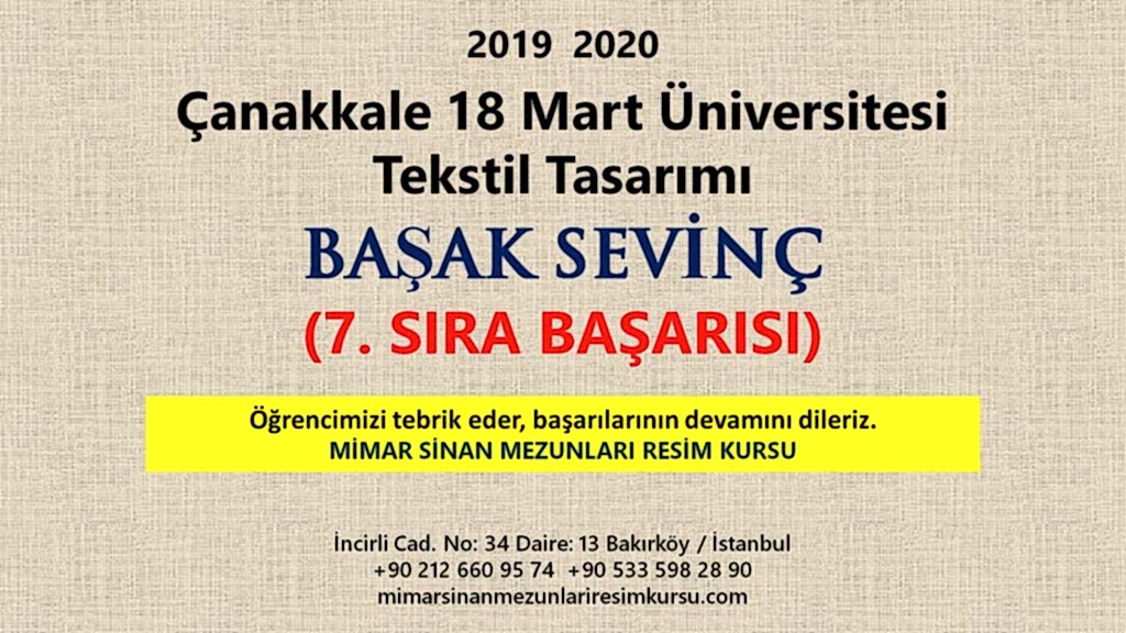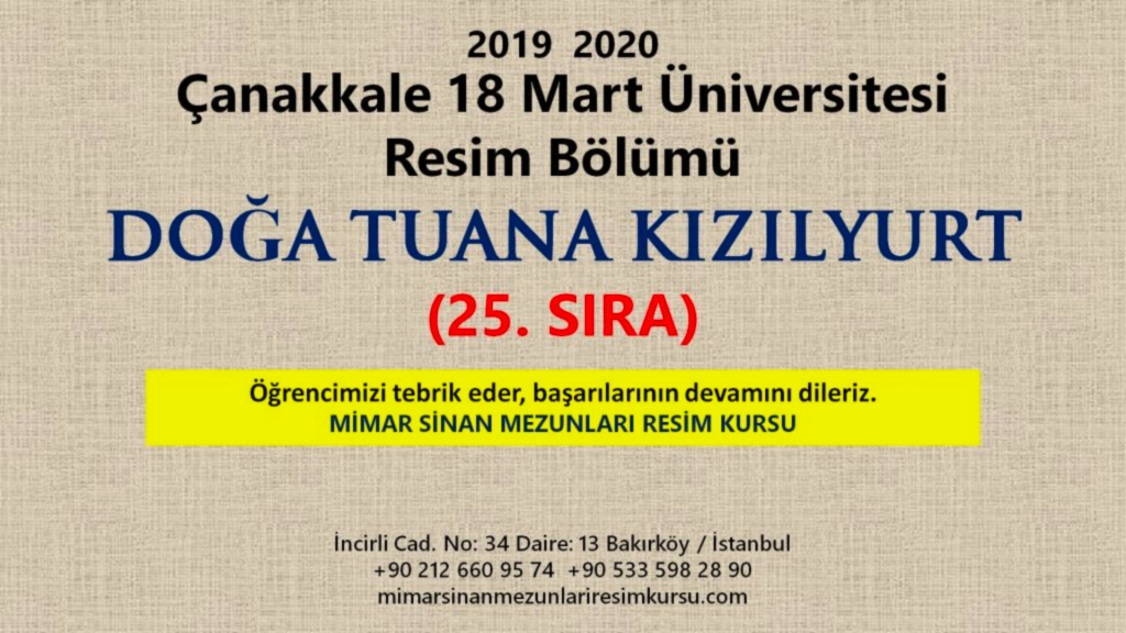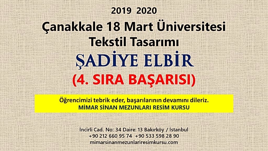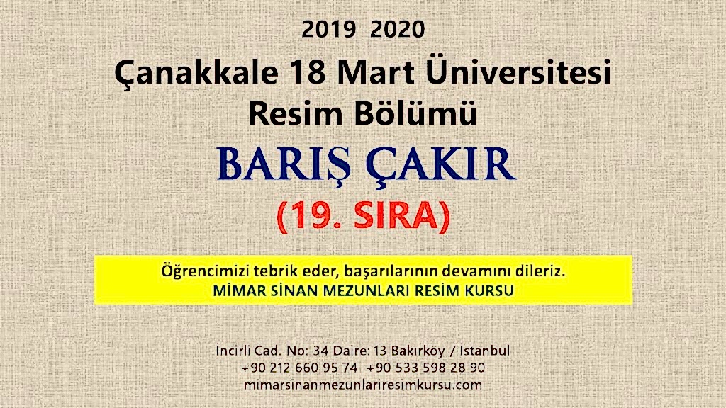 ***** Efehan ŞEN Çanakkale 18 Mart Üniversitesi'nde Güzel Sanatlar Fakültesi'ne kabul edilen öğrenciler arasında Resim Bölümü 15. sırada. Azerbaycan'da sanat eğitimi için Hazırlık Sanat Kursları temel beceriler sağlar, ileri düzey eğitim için hazırlar. Geleceğinizi güçlendirin.