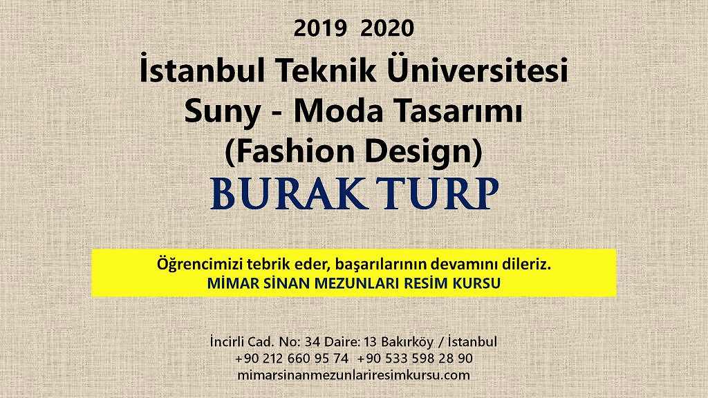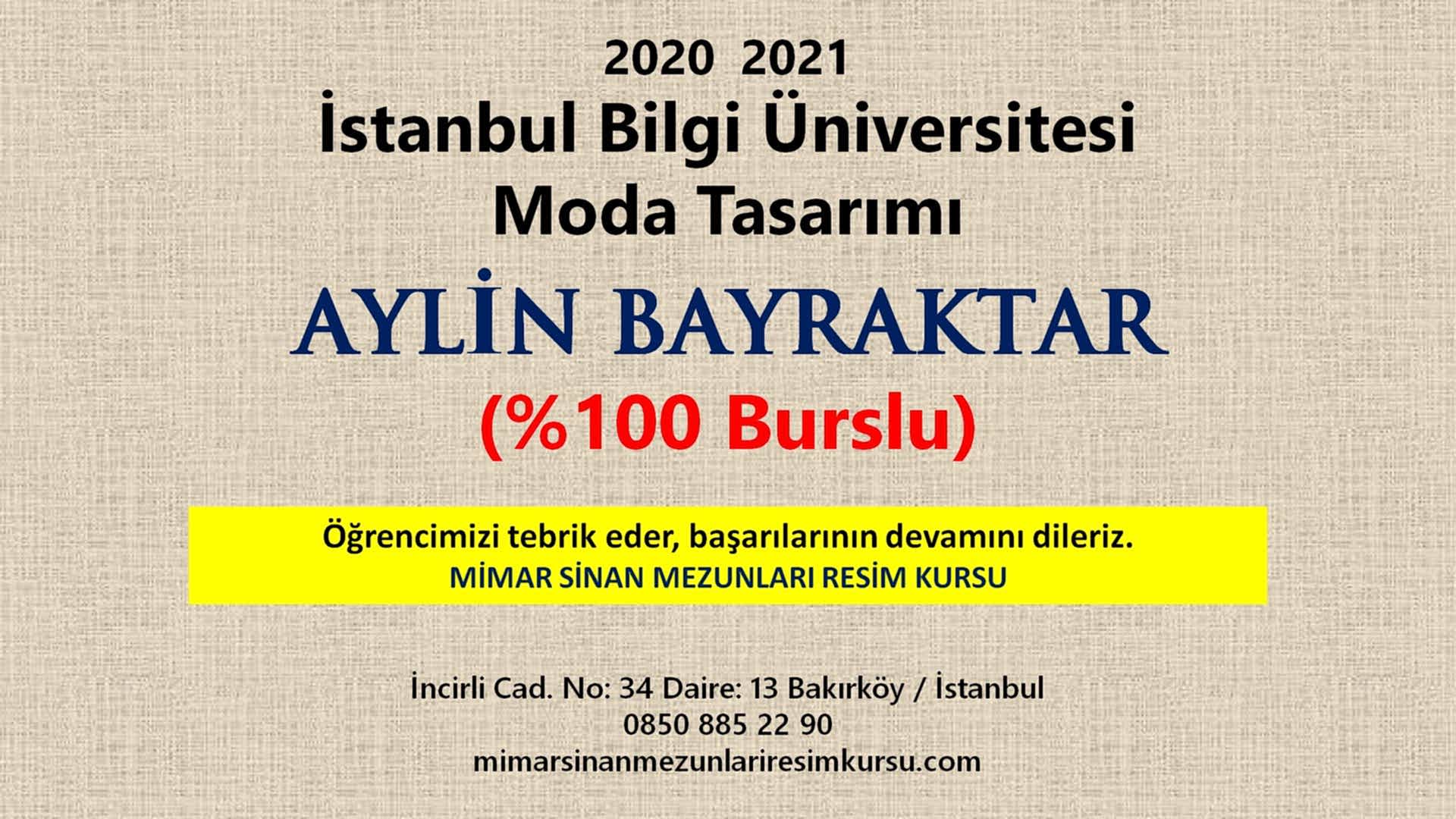 ***** Efe TAŞLICA İstanbul Bilgi Üniversitesi'nde Tekstil ve Moda Tasarımı bölümü için %50 burs fırsatı mevcuttur.