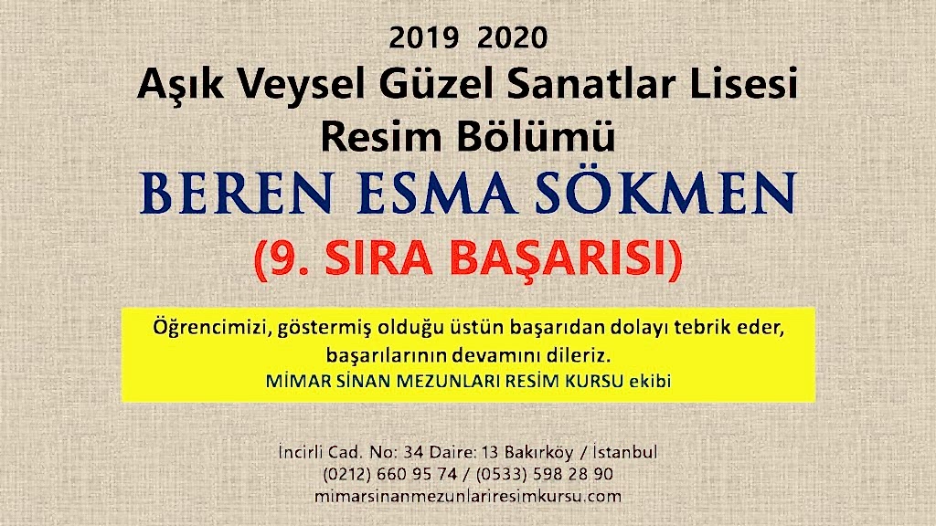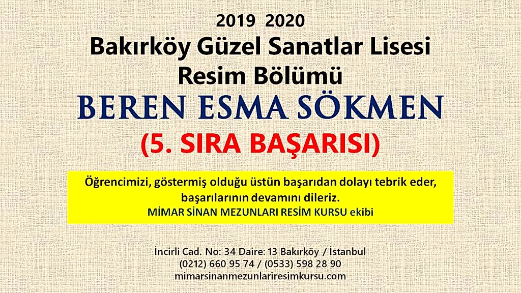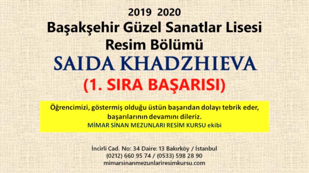 ***** Nisan TOMBAK Azerbaycan'da Sanat Hazırlık Kursları Azerbaycan'da Hazırlık Sanat Kursları Bakırköy Göksel Baktagir Güzel Sanatlar Lisesi, yüksek puanıyla dikkat çekiyor.