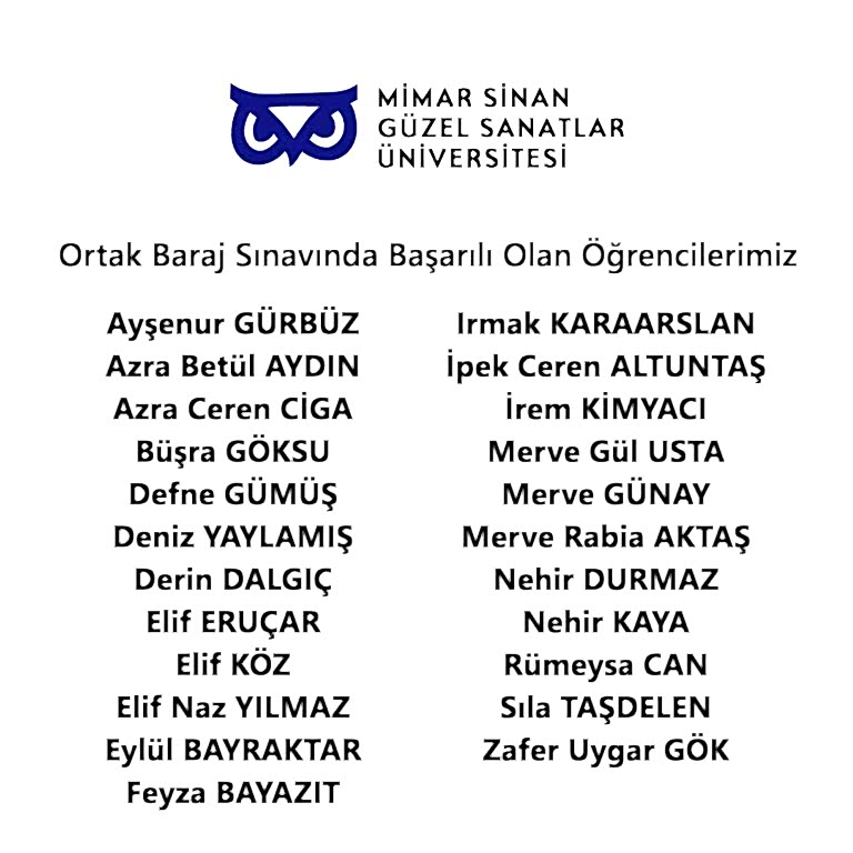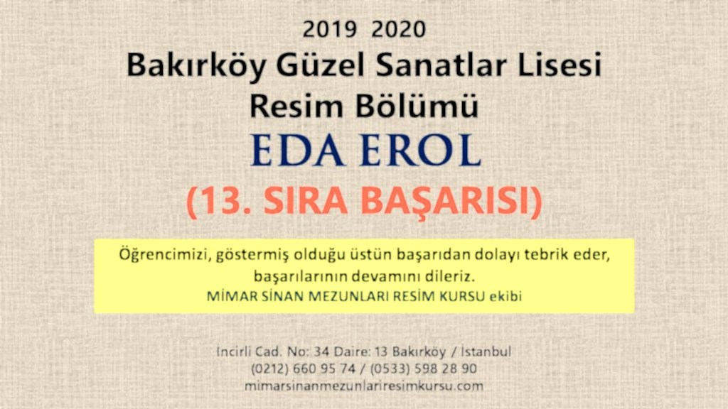***** Naz HAMZAOĞLU Bakırköy'deki Güzel Sanatlar Lisesi, Resim Alanı'nda 14. sırada.