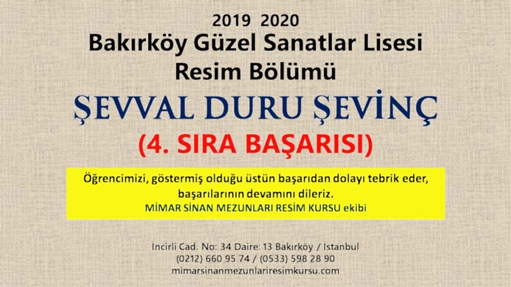 ***** Meva DURGUT Zeytinburnu Güzel Sanatlar Lisesi, sanatta 9. sıraya yükseldi. Azerbaycan'da Hazırlık Sanat Kursları Azerbaycan'da Sanat Kursları.