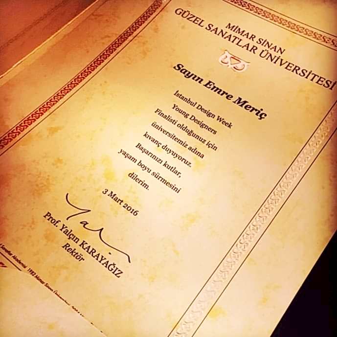 Mimar Sinan Güzel Sanatlar Üniversitesi'ni kazanan öğrencimiz Emre Meriç, Mimar Sinan Güzel Sanatlar Üniversitesi İstanbul Tasarım Haftası Genç Tasarımcılar Finalisti olmuştur. Kendisini tebrik eder, başarılarının devamını dileriz.