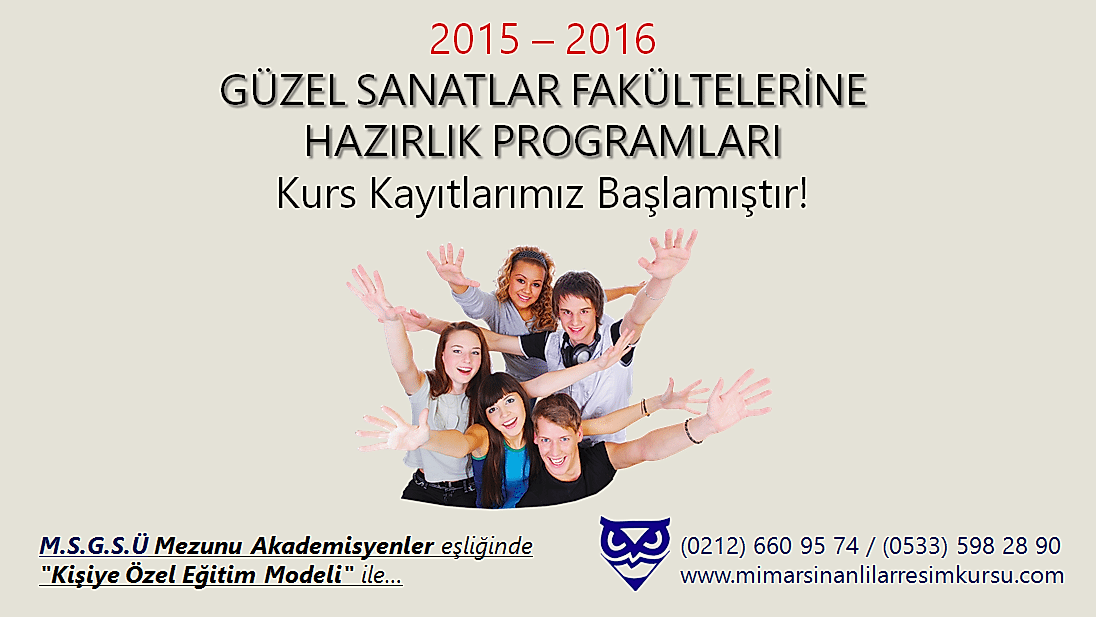 KAYITLAR BAŞLAMIŞTIR! (2013) Güzel Sanatlar Fakültelerine Hazırlık Kursları - Kayıtlar Başlamıştır. Güzel Sanatlar Liselerine Hazırlık Kursları (6, 7 ve 8. Sınıflara Yönelik) - Kayıtlar Başlamıştır.