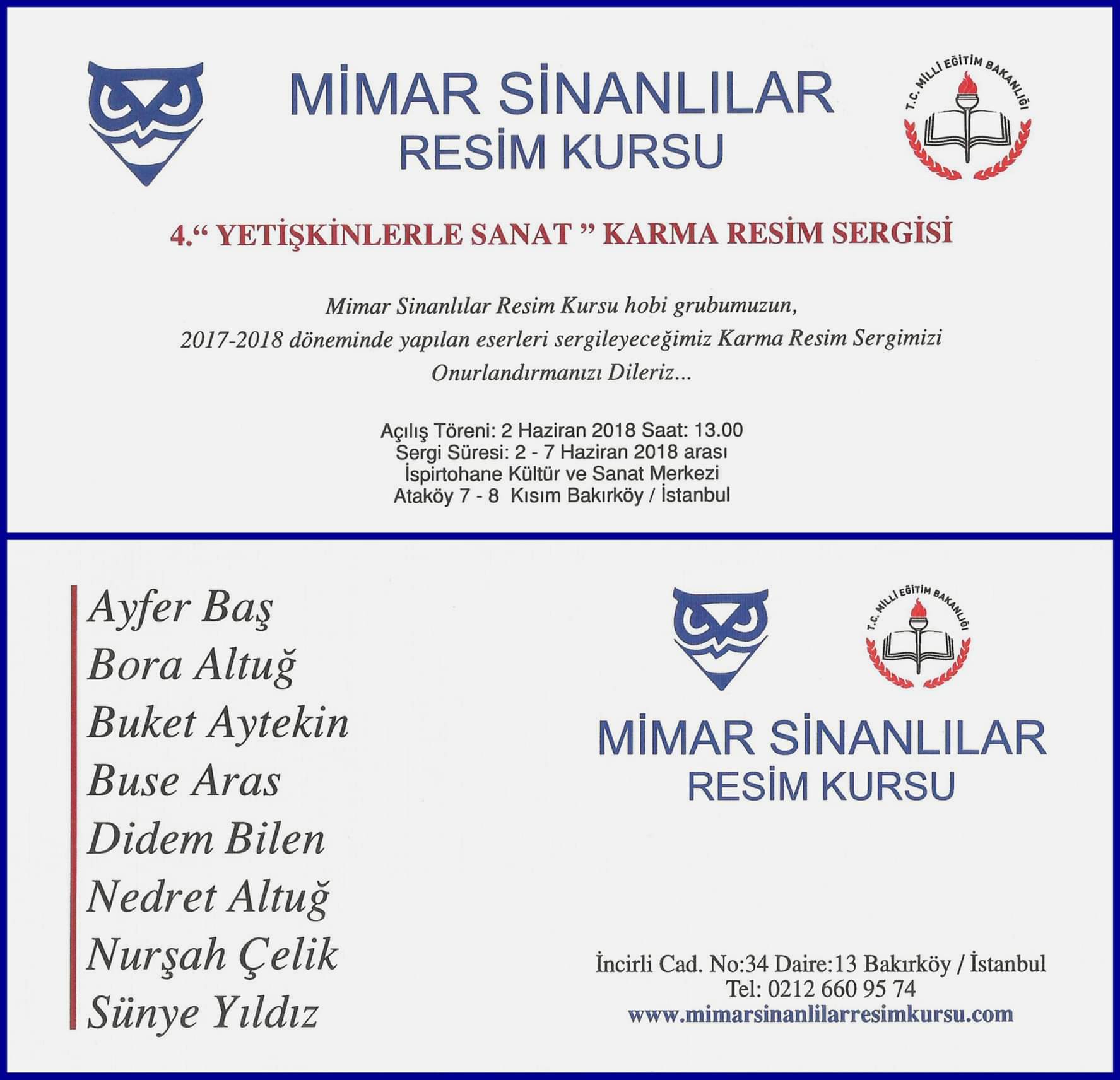 HOŞ GELDİN 2019 / YETİŞKİNLERLE RESİM PROGRAMLARI Öğrencilerimize sağlık, mutluluk ve başarı dileklerimizle... MİMAR SİNAN MEZUNLARI RESİM KURSU ekibi