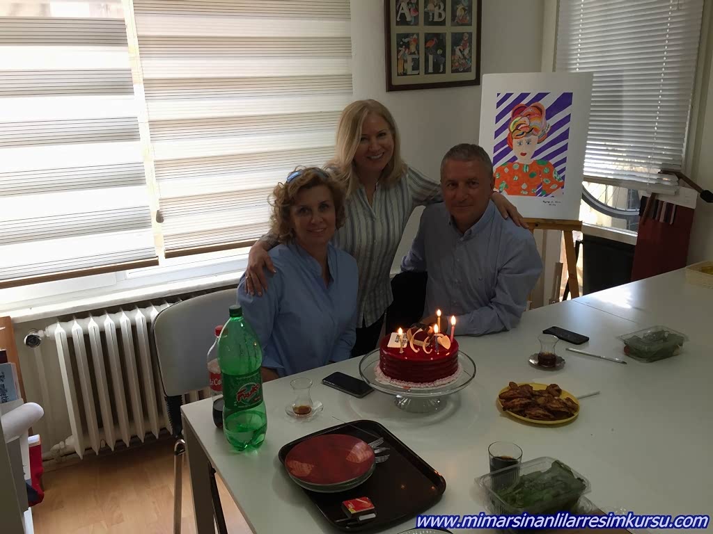 Mehtap Hocamızın liseden çok değerli dostları, Selma Hanım ve Bahadır Bey Mimar Sinan Mezunları Resim Kursu'nu ziyaret etti. Sohbetin ardından, sürpriz yaparak hocamızın 28 Mayıs'taki doğum gününü de önceden kutladılar. Selma Hanım ve Bahadır Bey'e bu güzel ziyaretlerinden dolayı Mimar Sinan Mezunları Resim Kursu Ailesi olarak teşekkür eder, sizlere sağlıkla, mutlulukla nice dostluklar dileriz.